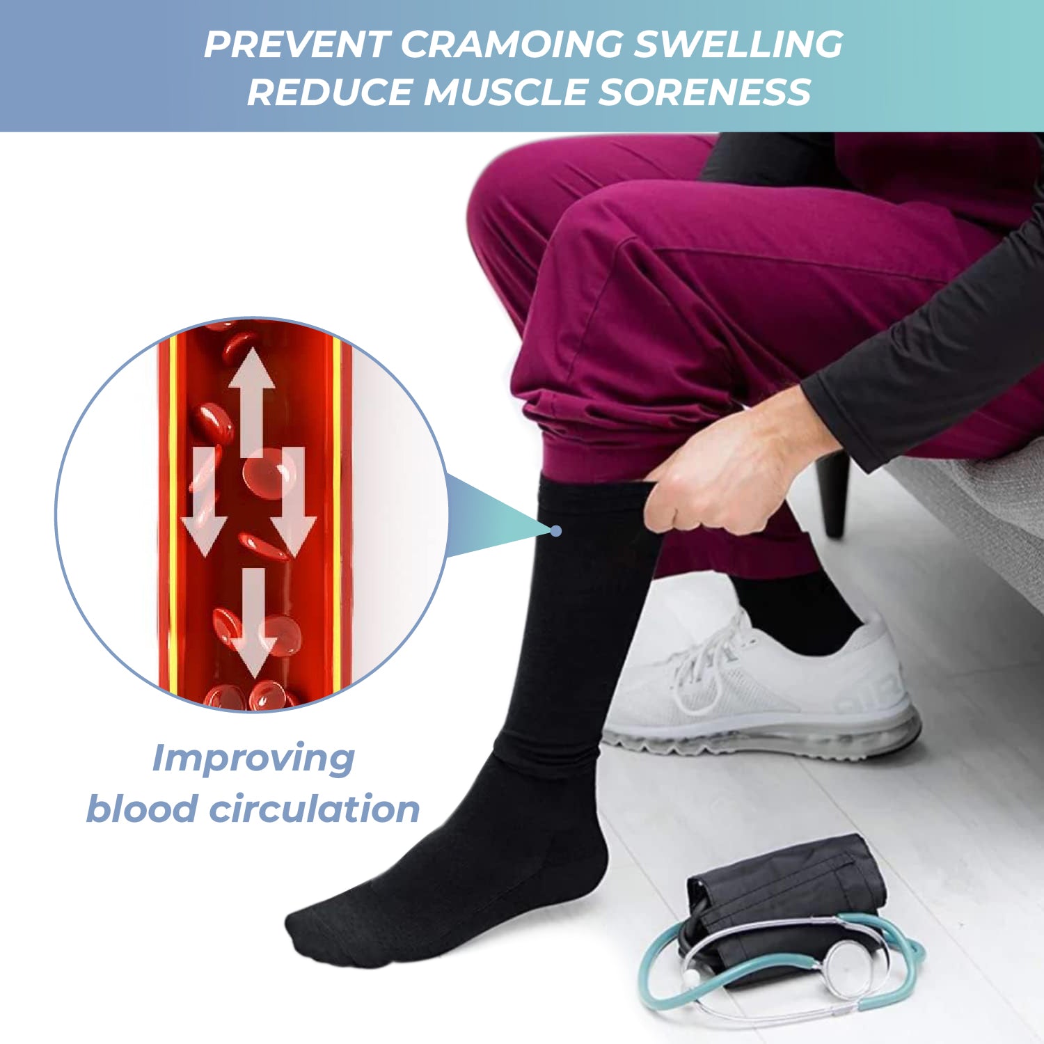 Crafted with premium, breathable fabric, our socks offer exceptional softness, durability, moisture-wicking, and antimicrobial protection. So your legs stay fresh, supported, and comfortable all day long.